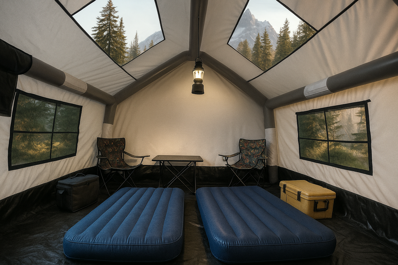 Yüksek Performanslı Şişirilebilir Yapısı – Şişirilebilir direkler ile çadırınızın birkaç dakika içinde kurulama hazır. Güçlü ve sağlam bir yapı oluşturarak tatilinizin keyfini çıkarın. Güvenlik en büyük önceliğimizdir ve şişme çadırlarımız sıkı testlere tabi tutulur.
