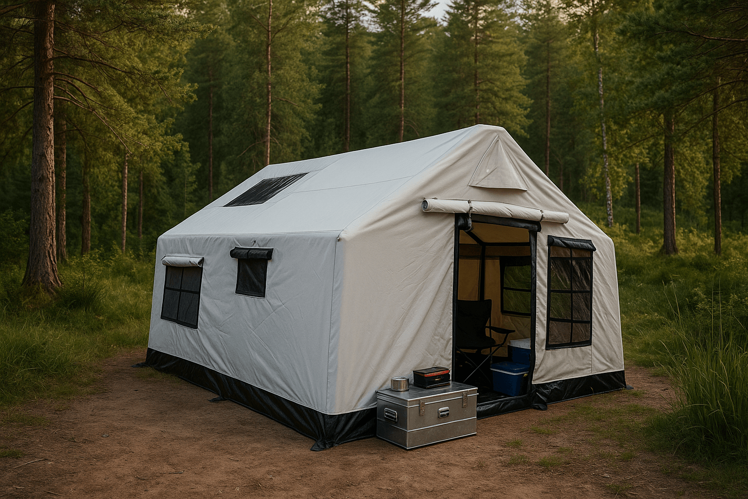 - Çadır Zemini: %100 Su Geçirmez, Yanmaz ve Anti-Bakteriyel PVC