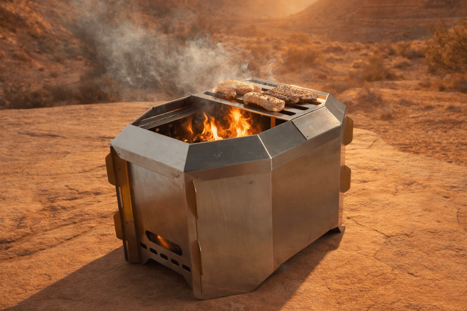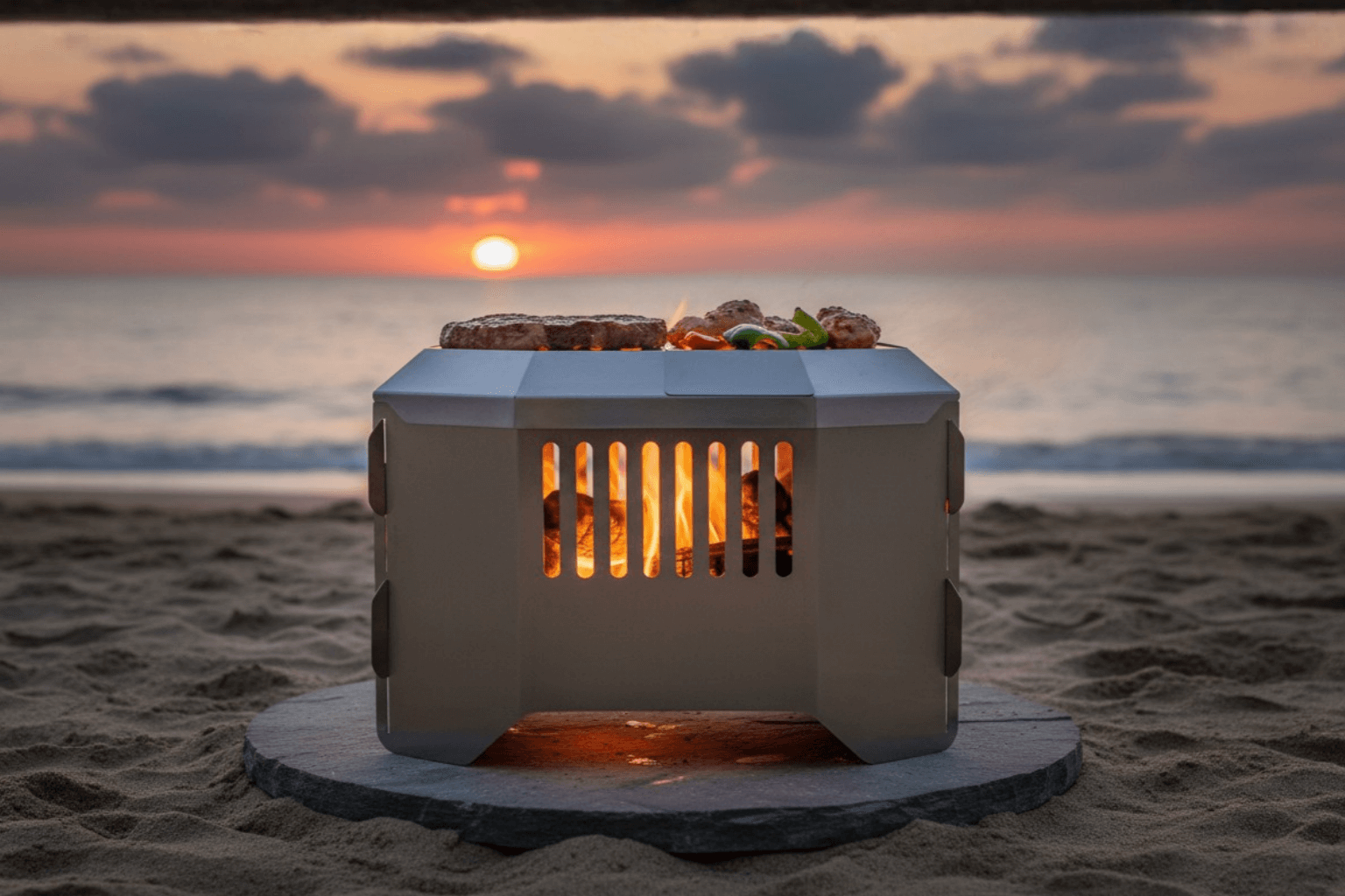 Katlanabilir yapısı sayesinde klasik ateş çukurlarına göre daha kompakt ve taşınabilir bir çözüm sunar. Paslanmaz çelik gövdesi, modüler panel yapısı ve ızgara aparatı ile hem fonksiyonel hem de estetik bir outdoor ürünüdür. Açık alanda ateş keyfi ve pişirme deneyimini tek sistemde birleştirir.