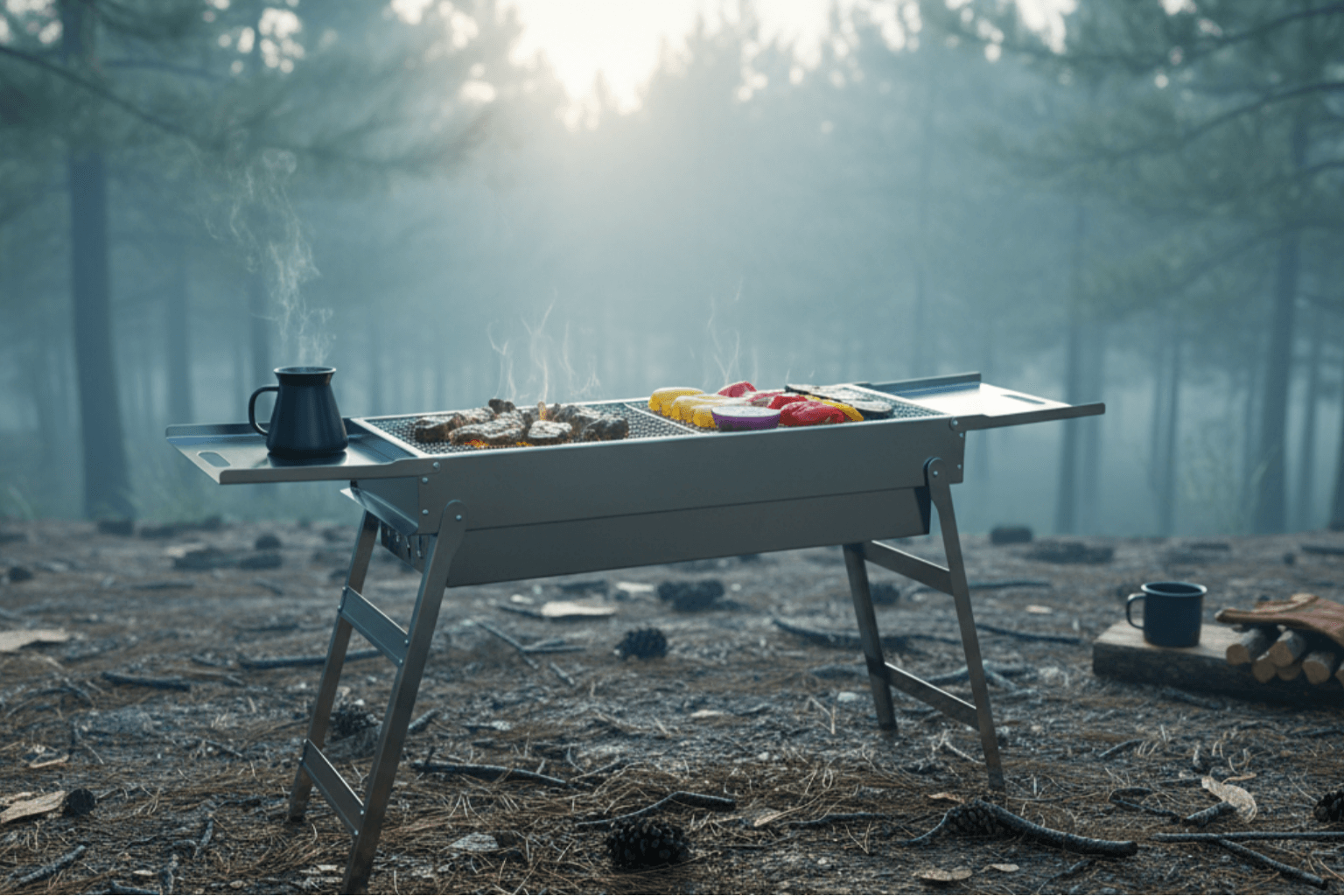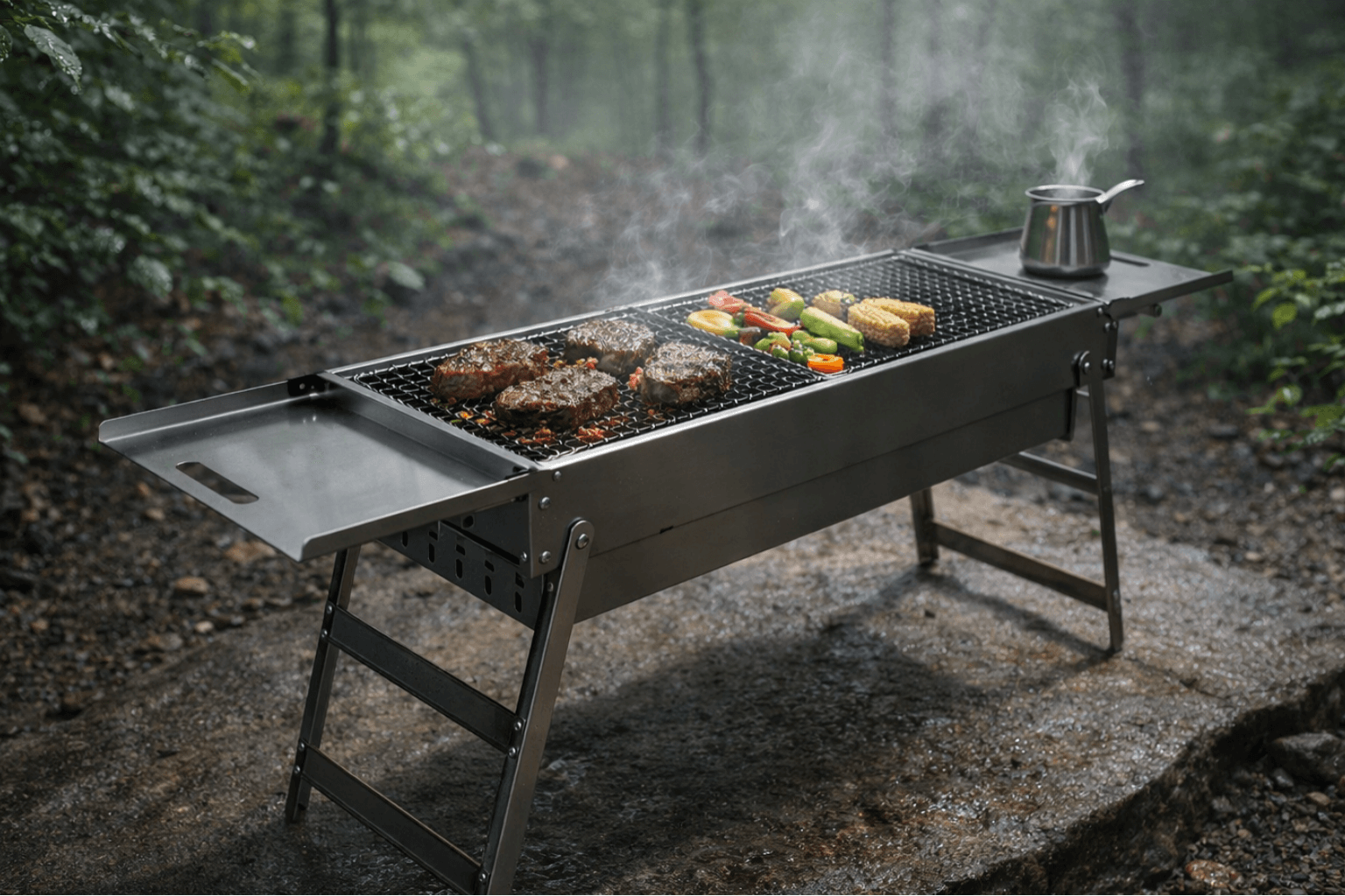 AISI 304 Paslanmaz Çelik • Katlanır Tasarım • Geniş Izgara Alanı • Kamp ve Outdoor Kullanıma Uygun