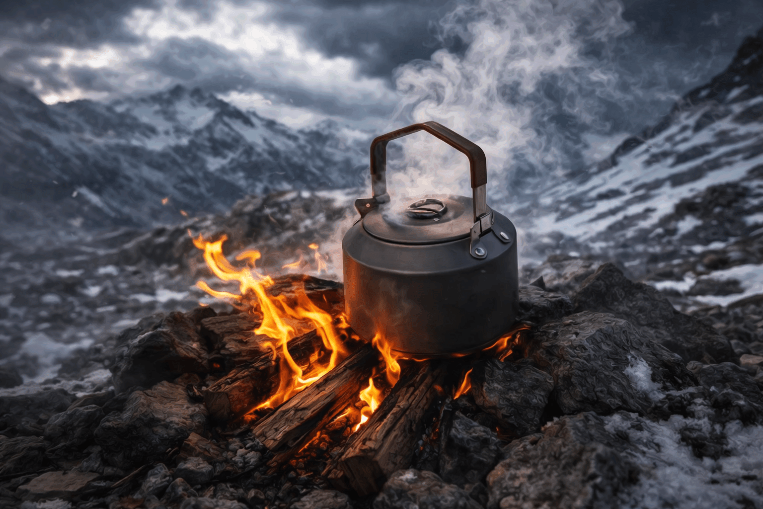 Titanyum Kaplamalı Paslanmaz Çelik Kamp Çaydanlığı (1LT)